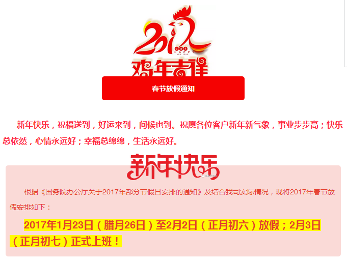 山東任易烹食品有限公司 | 2017年春節(jié)放假通知